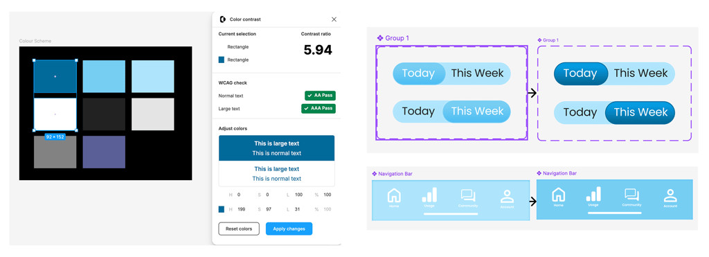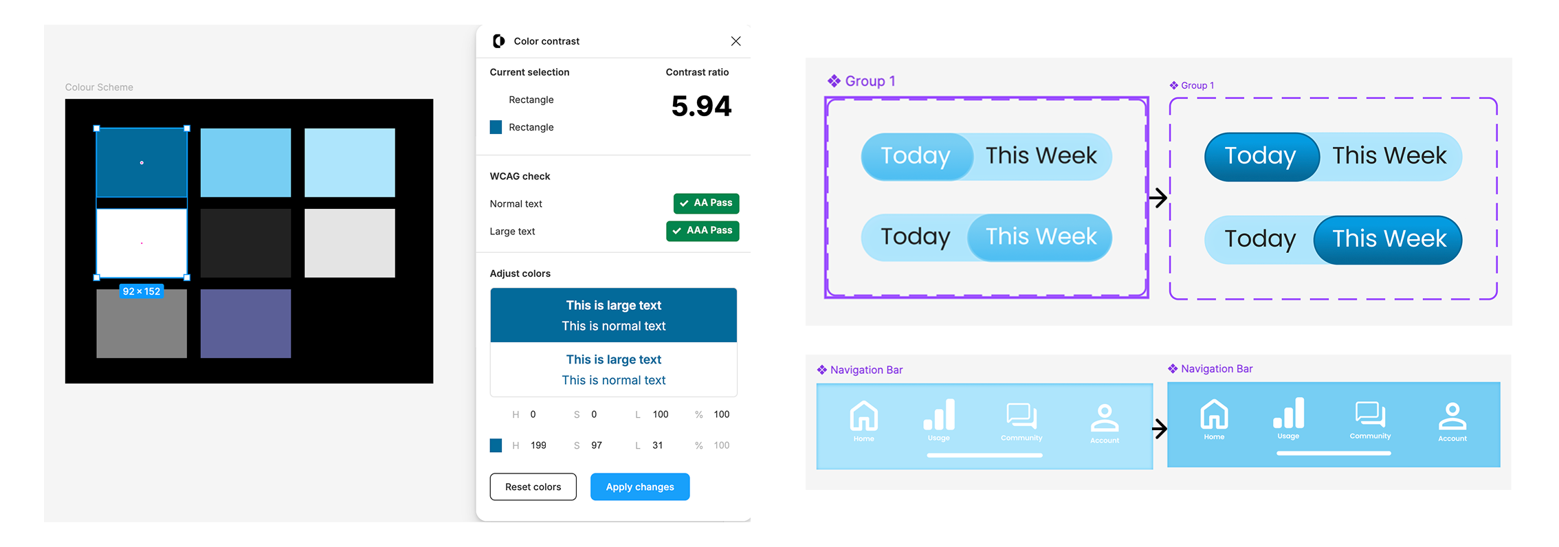 A contrast checker was run for all colour combinations. This led to two changes, the darkest blue was made much darker so that it could be used with white text and the navigation bar was changed to the medium blue. Voice assistance and screen reader support could be a valuable design addition as could a government-supported payment scheme to allow lower income-households to purchase the IOT sensors.