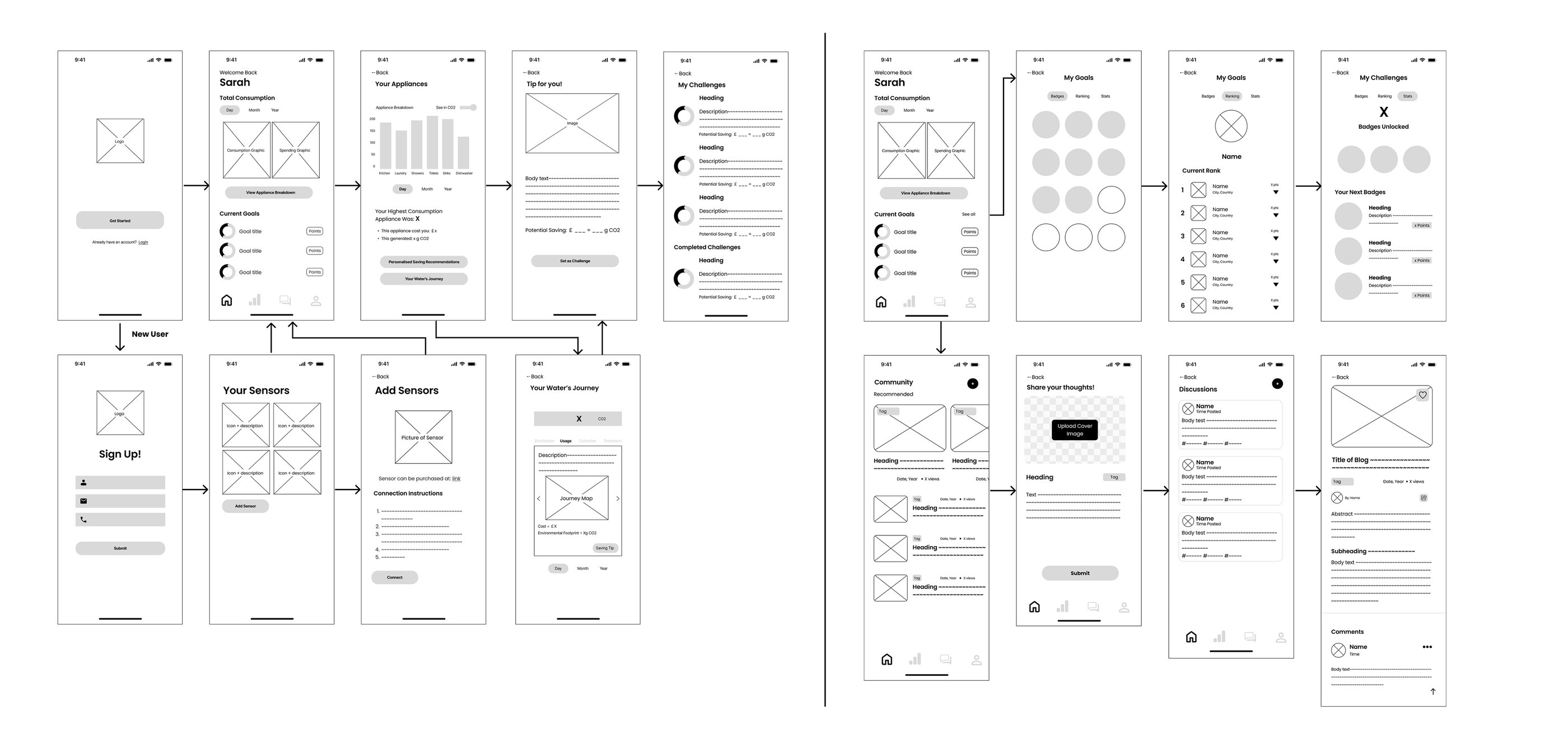 Flow B: Join a community to share water-saving tips and compete to reduce consumption.
